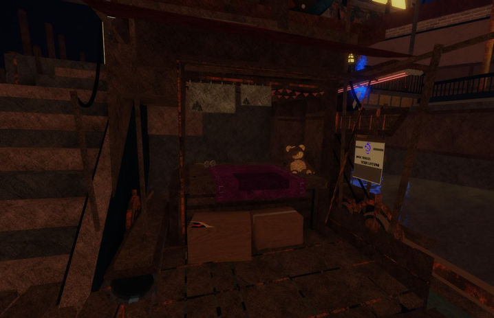 Its a smokey dark themed place, surrounded by water. Its warm and inviting yellow lighting compliments the dark and eerie enviroment. It is currently still in progress, my plan for it is to make it a 3 level area, small but compacted.